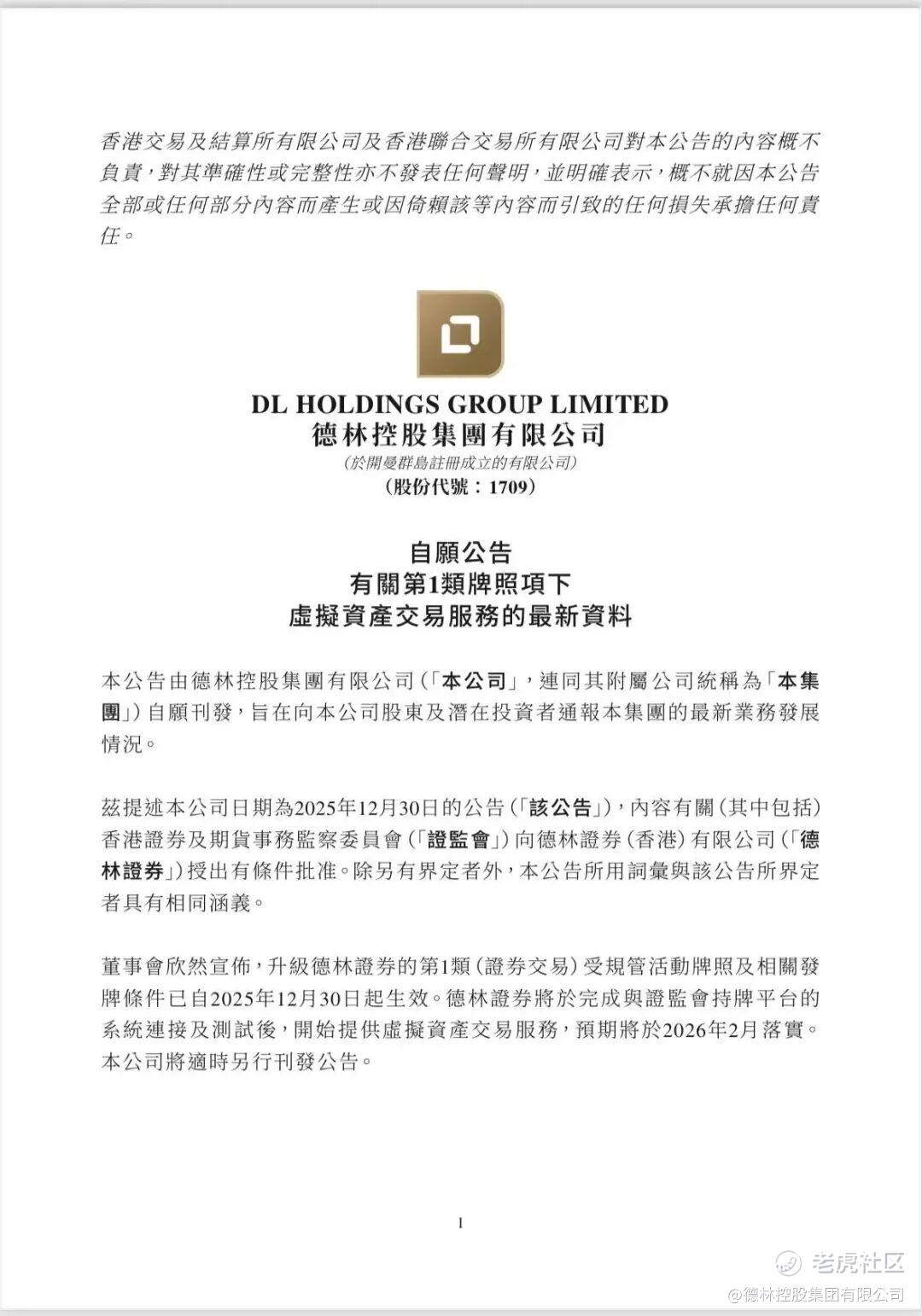 图1:德林虚拟资产交易牌照升级生效,图片来源:港交所Image