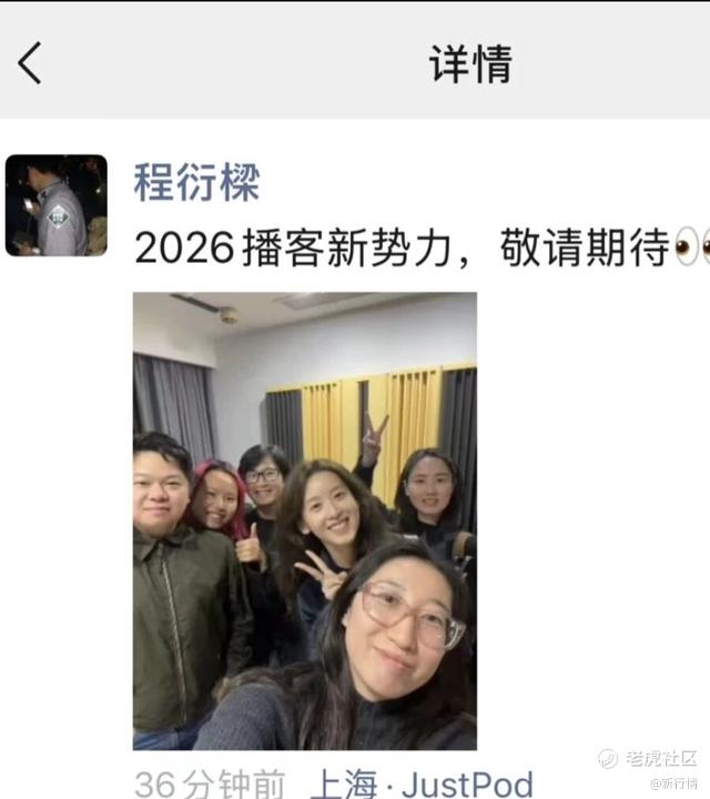 与其合作的主持人程衍梁在朋友圈晒出了两人的合影,并配文“2026播客新势力,敬请期待”。
