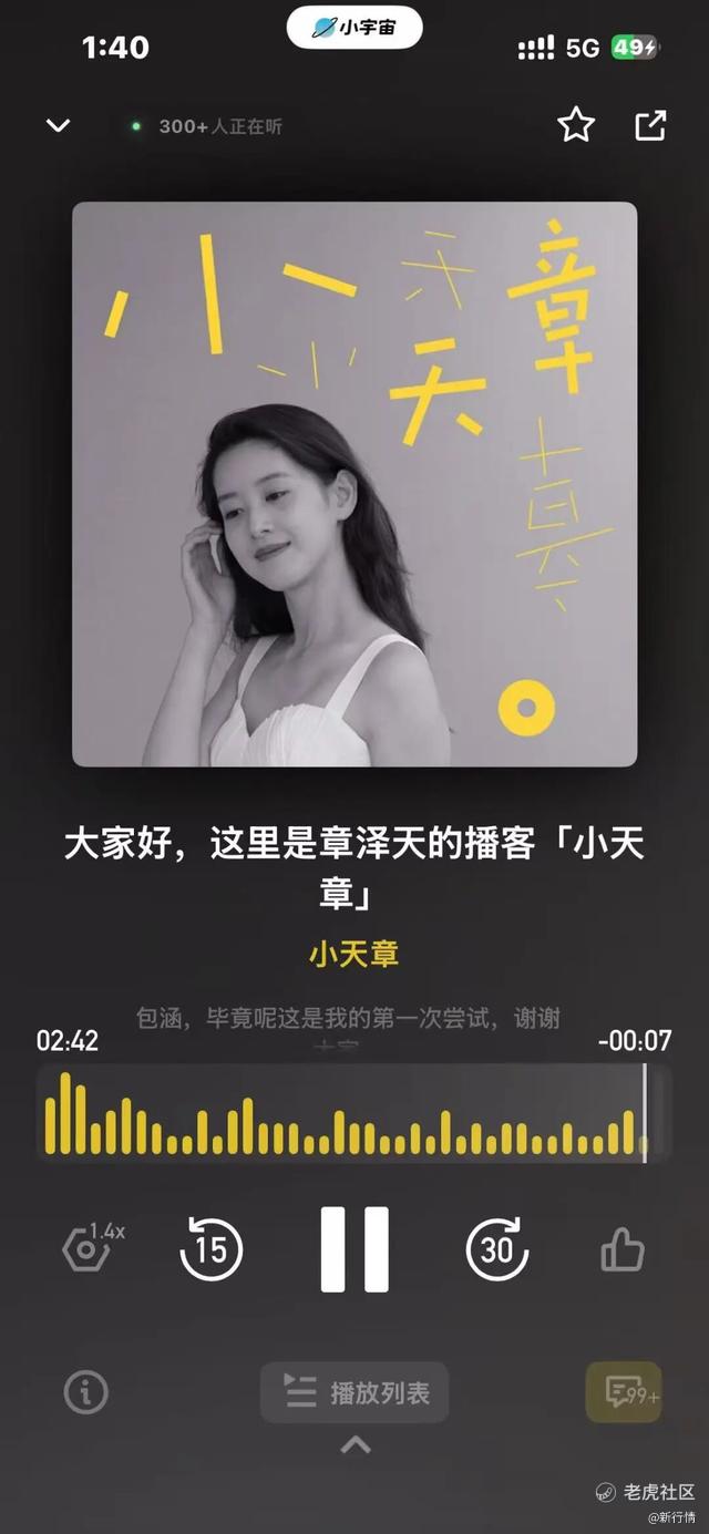 近日,章泽天个人播客上线小宇宙APP,并发布第一条3分钟自我介绍播客,该条内容1小时收听量破万。