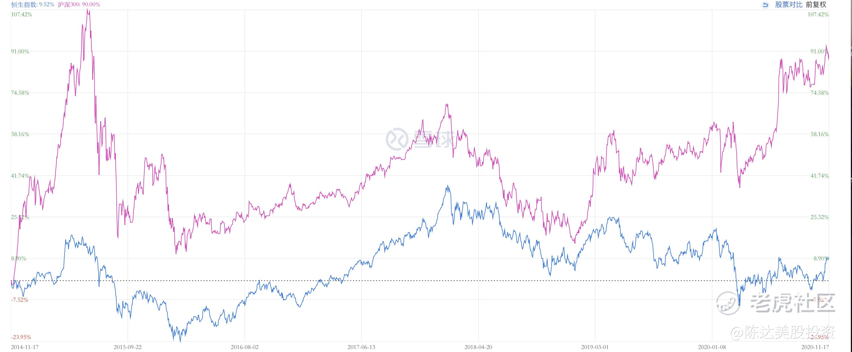 最近港股与A股背离,A股十七郎,港股武大郎,港股的背离未免让港股的兄弟们感到背刺。怎么理解这个事情?先看历史。