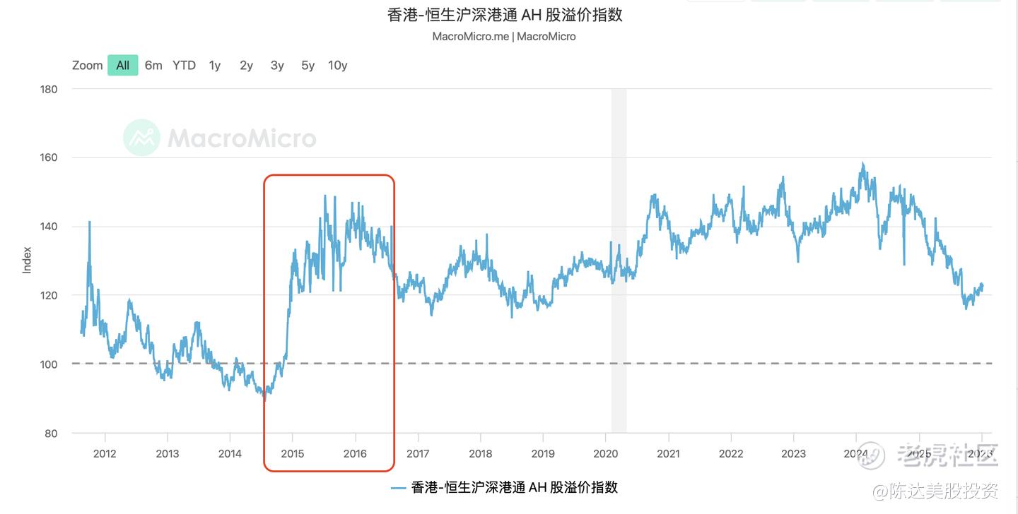 (长期AH溢价的创造,数据来源:macromicro)