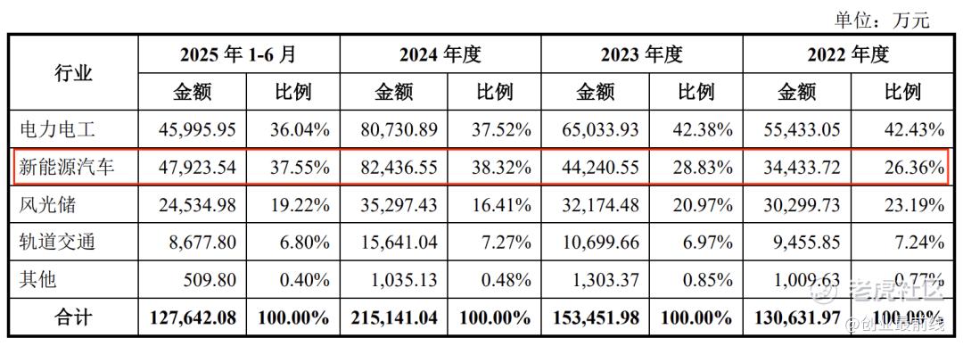 从2024年开始,新能源汽车行业的营收规模超过了电力电工,成为贡献营收最多的行业。