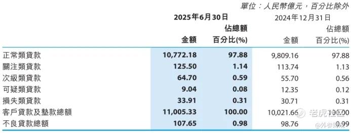 一方面,资产质量的隐忧正在显现。截至2025年6月30日,徽商银行不良贷款率为0.98%,较上年末下降0.01个百分点,整体资产质量保持稳定;次级类贷款余额从上年末的55.70亿元增加到64.70亿元,增长16.1%,是所有不良贷款分类中增长最快的。