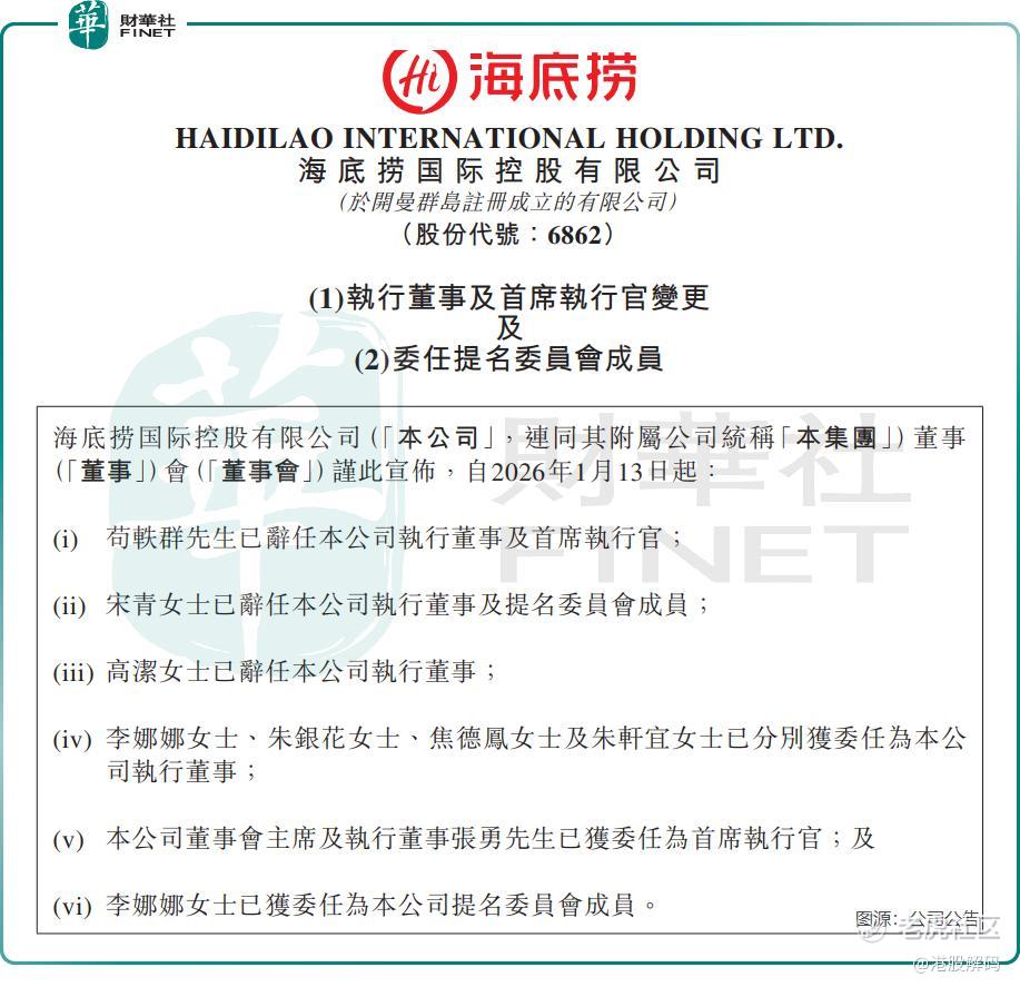 1月13日晚,海底捞的董事会变动公告引发市场高度关注。公告显示,苟轶群辞任公司执行董事及首席执行官(CEO),董事会主席兼执行董事张勇获委任为新任CEO。这意味着,这位将海底捞从一家小店打造成餐饮巨舰的创始人,在交出执行权四年后,再度回归一线,亲自操盘。