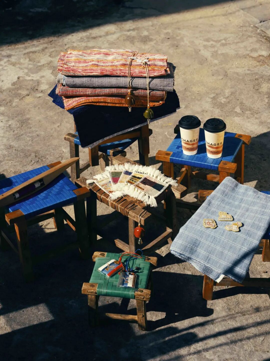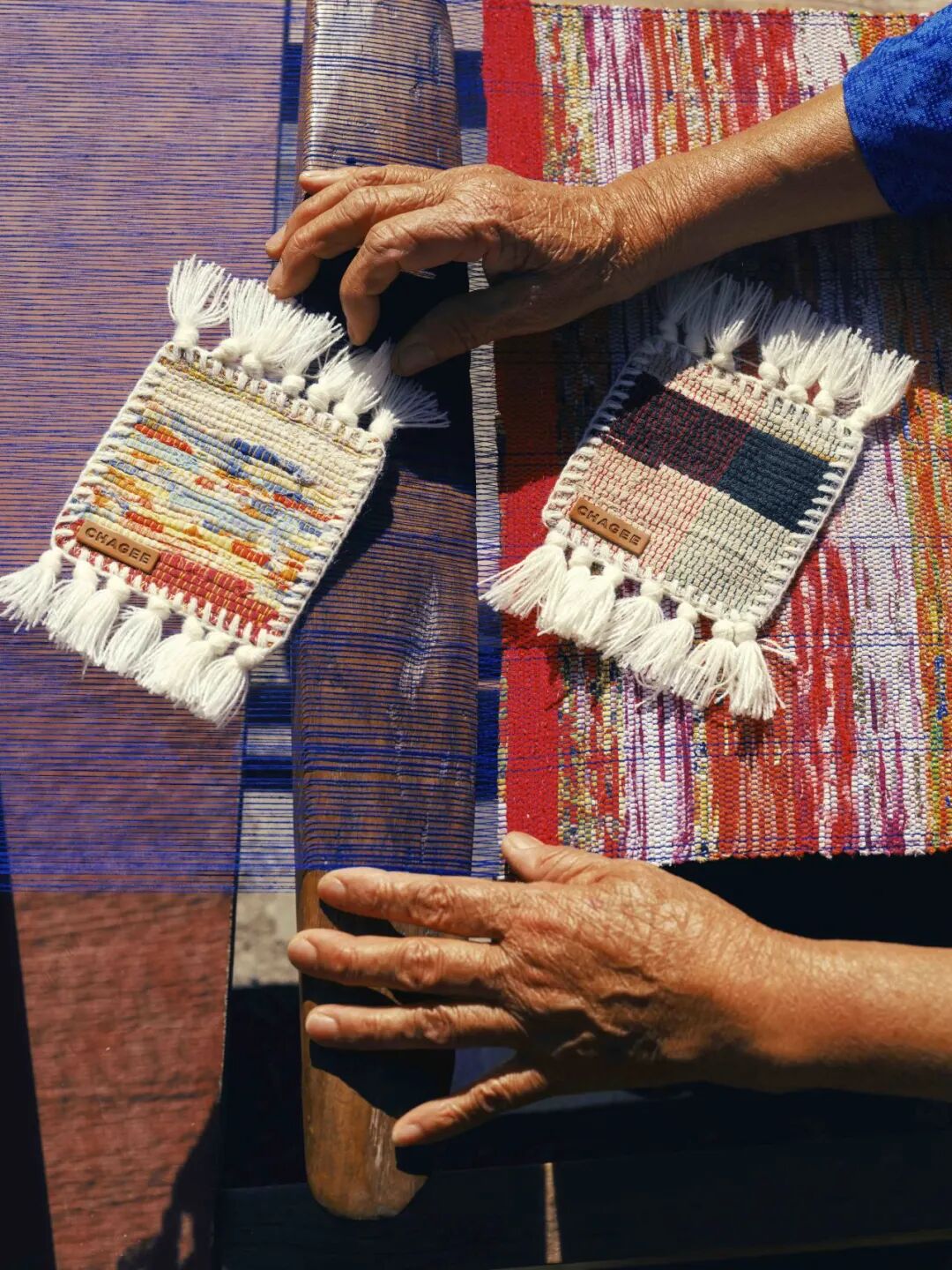 相比于“美观”,裂织布工艺更看重“实用”。由于使用的旧布来源不一,重新织造的布匹也就有了不同的外观。也就是说,每一个裂织布杯垫都是“超级大盲盒”——世间不存在一模一样的杯垫。