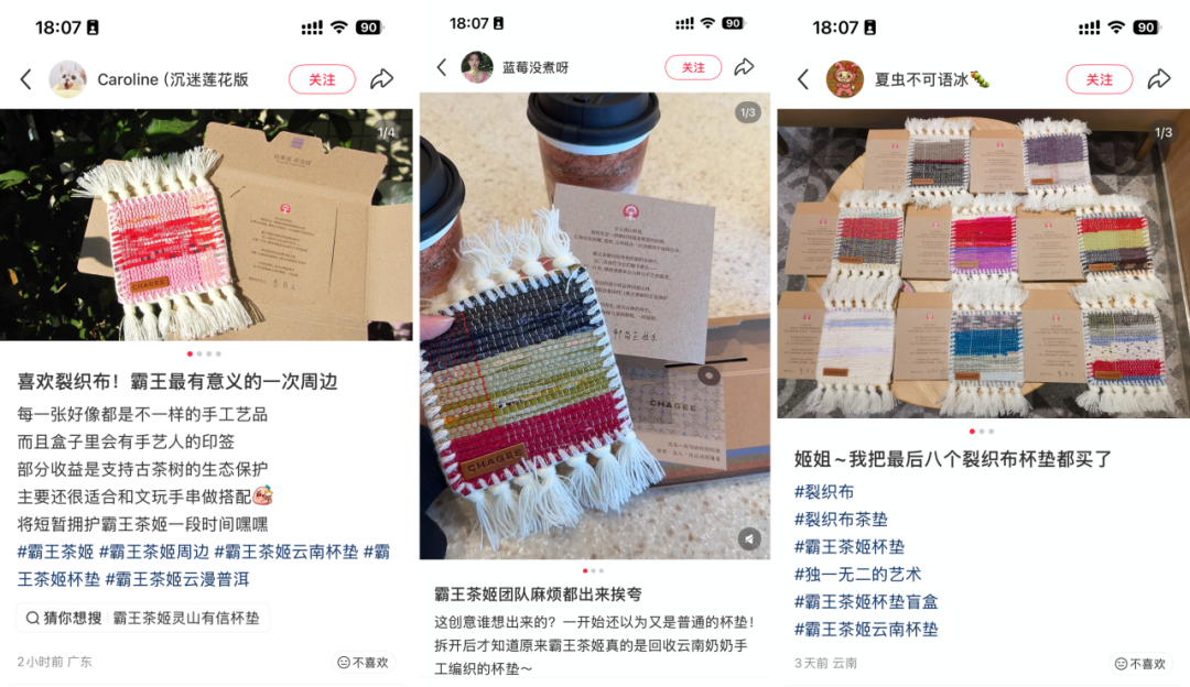 最近,一款霸王茶姬的周边杯垫在小红书上“挨了不少夸”。