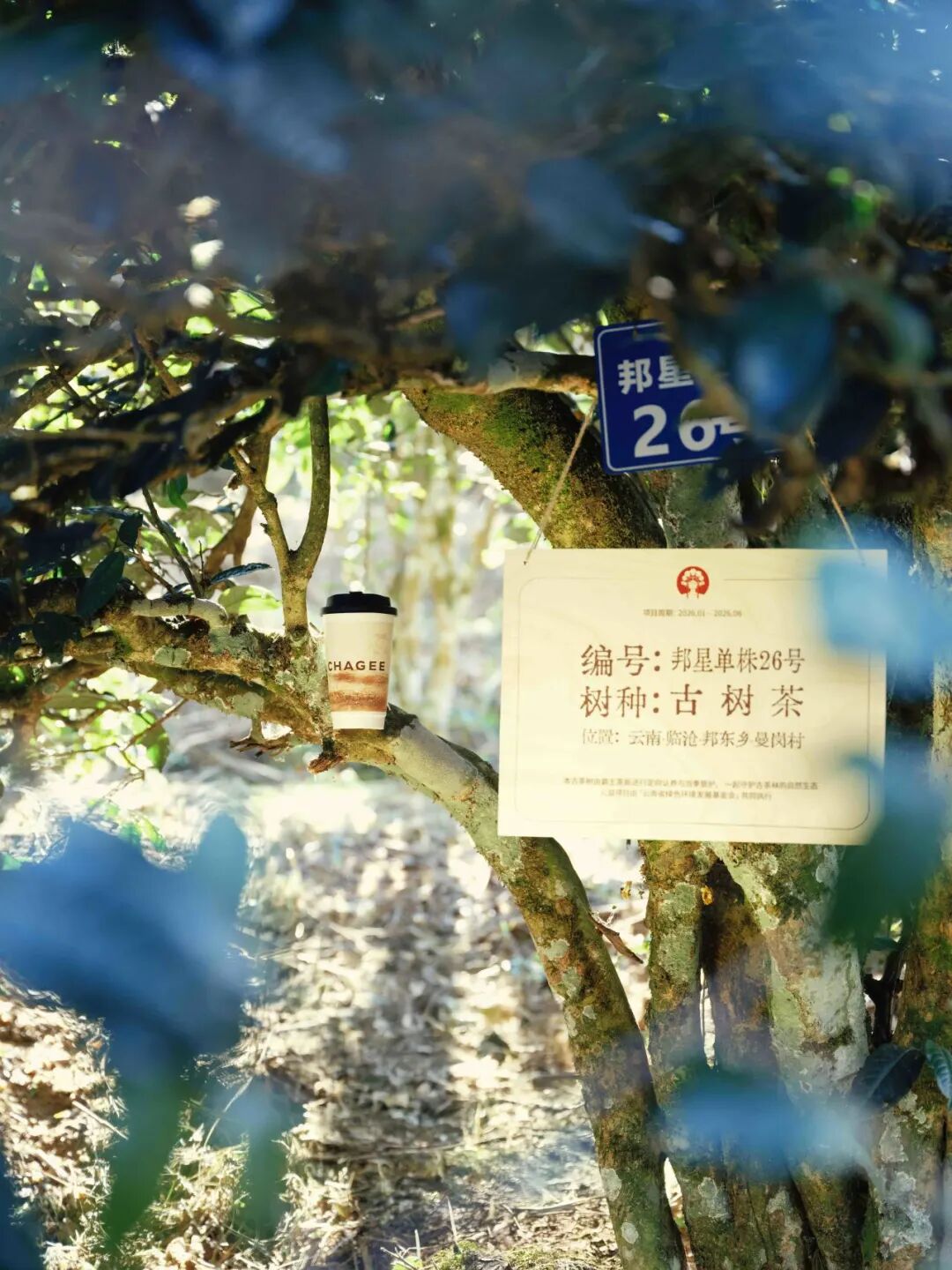 另一方面,霸王茶姬也亲身投入云南茶山的环境保护中:与云南省绿色环境发展基金会合作,试行“认养一颗古茶树”——为期半年,对临沧曼岗村古茶树进行定向管护。茶友购买活动套餐的部分收益,将用于古茶树生态保护。