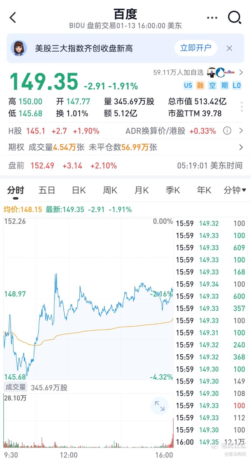 截至北京时间1月14日收盘,百度港股上涨1.9%。截至美东时间1月14日五点,百度美股盘前涨超2%。