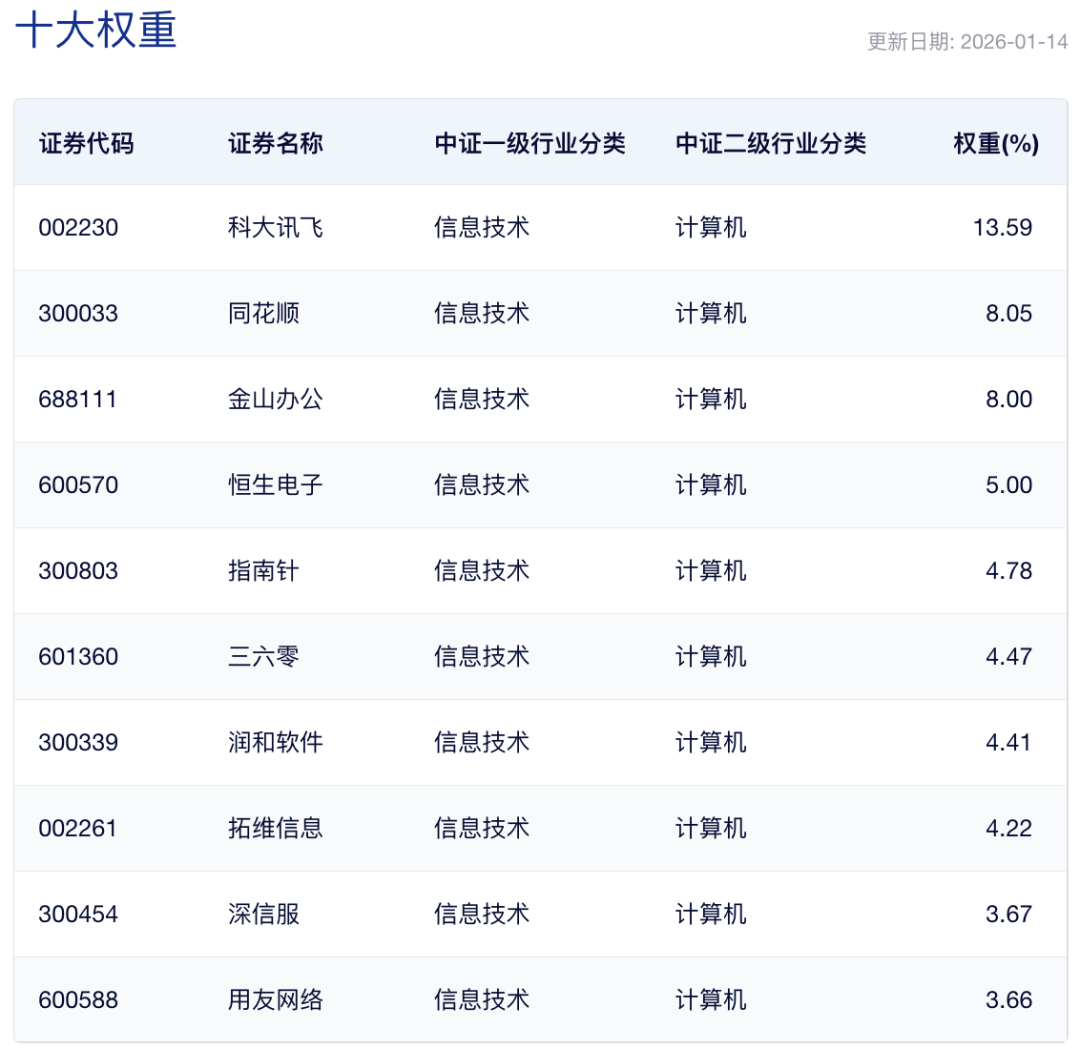 来源:中证指数公司,截至1月14日,前十大权重仅供分析参考,不构成个股推荐