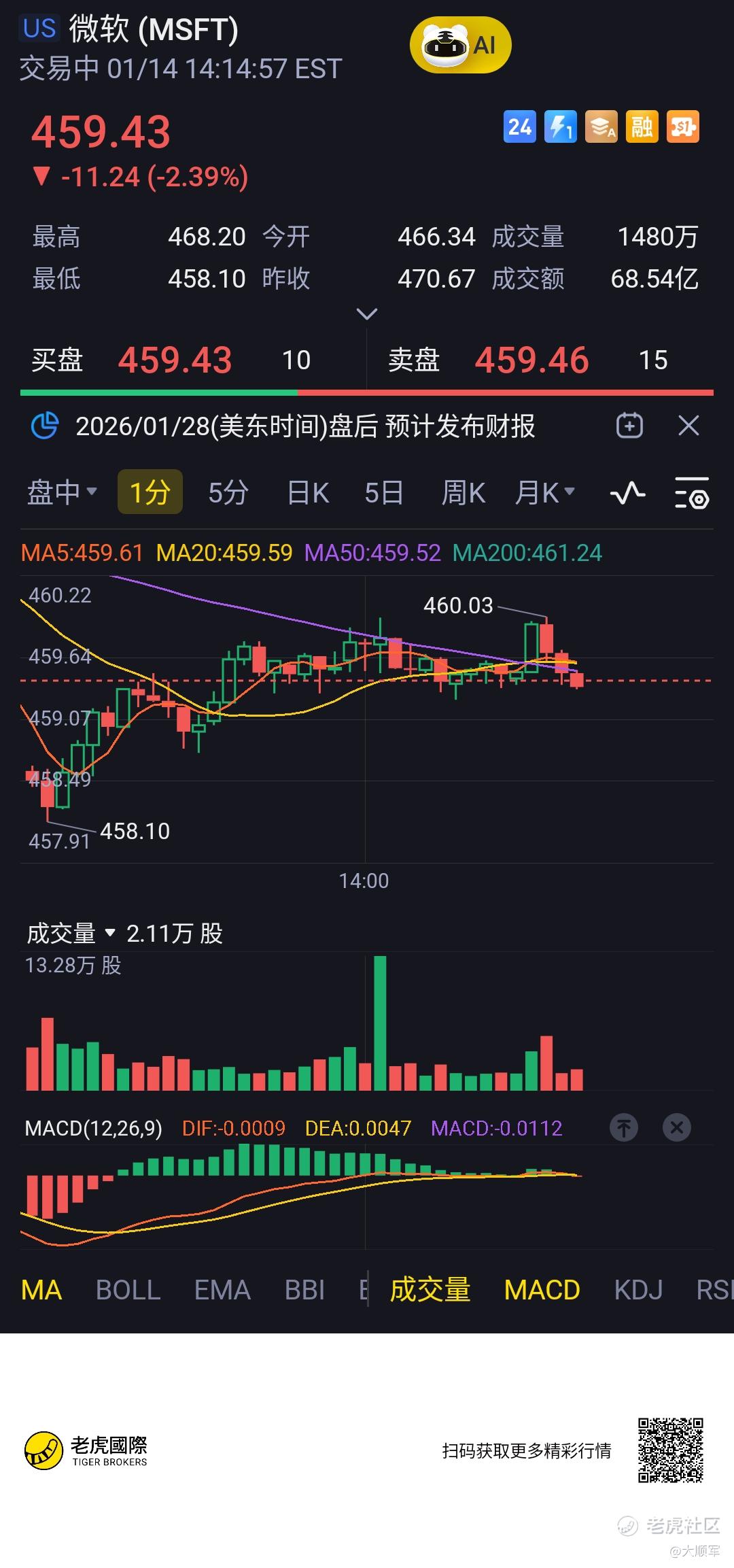$微软(MSFT)$ 2次试图突破460,都被立刻反手打下来了,说明正在被做空,