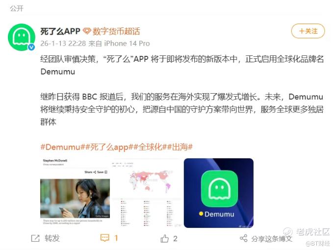 更值得关注的是这款APP竟然在全球火了。团队宣称继BBC报道后,我们的服务在海外实现了爆发式增长。未来,Demumu将继续秉持安全守护的初心,把源自中国的守护方案带向世界,服务全球更多独居群体。