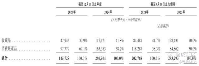 近年来,Suplay的收藏品产品收入和收入占比持续增长,2023年、2024年和2025年前9个月(下称“各期”)分别实现收入0.48亿元、1.17亿元和1.98亿元,分别占总收入的32.9%、41.8%和70%。对此,公司称是由于抓住了市场机遇并策略性地调整产品组合以将资源集中在快速增长的收藏品分部。
