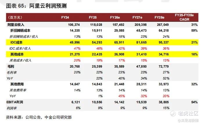 其次,AI云的利润率水平从中长期来看要高于传统云。且随着 AI 收入占比持续提升,预计阿里云的整体利润率有充分的提升空间。预计2028财年阿里云AI业务EBITA margin有望接近18%,有望贡献增量3.5%的利润率。