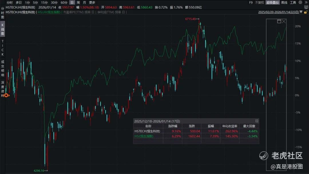 值得注意的是,虽然恒生指数涨了不少,但恒生科技指数距离去年高位仍有约12%的差距,这反而意味着潜在的补涨机会。
