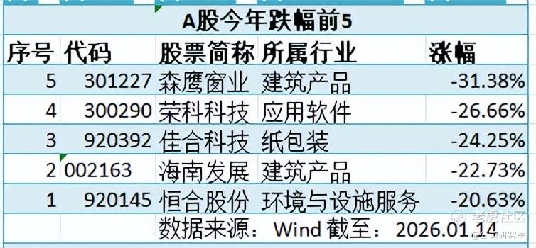 Wind数据显示,截至1月14日收盘,开年以来京沪深三市有7只个股(不含刚上市的新股)股价翻番,同时也有5只个股(不含ST类股票)跌幅超过20%。两者之间,最大反差竟然高达230%。