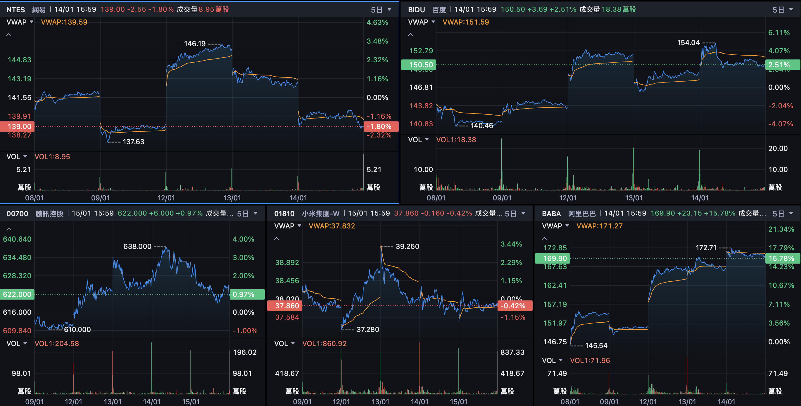 网易 $网易(NTES)$ $网易-S(09999)$ (NTES.US / 9999.HK):美股收报139.00美元,下跌1.80%,但一周内波动剧烈,最高达146.25美元,反映市场对游戏与人工智能结合的关注。