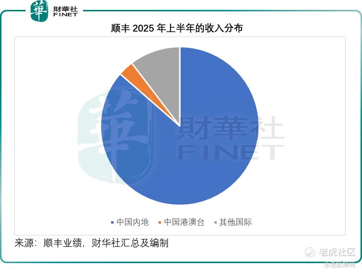 从2025年上半年业绩来看,中国内地占了顺丰总收入的86.43%,港澳台占了3.20%,而海外市场则占了10.36%,较上年同期有0.02个百分点的增幅。