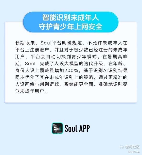 在未成年人保护方面,Soul坚持明确边界与精准识别并重。平台严格执行“18周岁以下用户禁止注册”的规则,并针对行业普遍存在的身份冒用问题,在识别链路中引入AI大模型,构建多维用户行为分析体系。报告显示,“扮演成年用户”的识别策略贡献率达到99%,显著提升了识别准确性。同时,围绕暑期等重点时段,平台开展专项治理,累计处置不良内容50余条,并联合权威医疗机构建立心理援助机制,从内容、机制和支持网络多层面守护未成年人网络使用环境。
