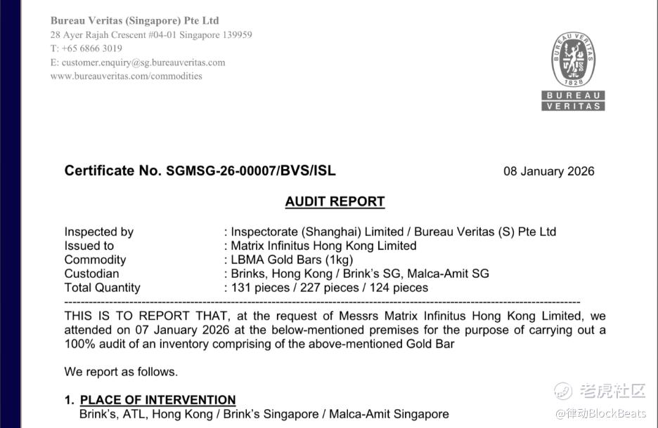 Matrixport 旗下 RWA 平台 Matrixdock 近日发布 2025 年下半年(H2)半年度实物黄金审计报告。报告围绕 XAUm 代币对应的实物黄金储备情况展开披露,体现了 Matrixdock 在实物资产验证与信息透明度方面的持续投入。