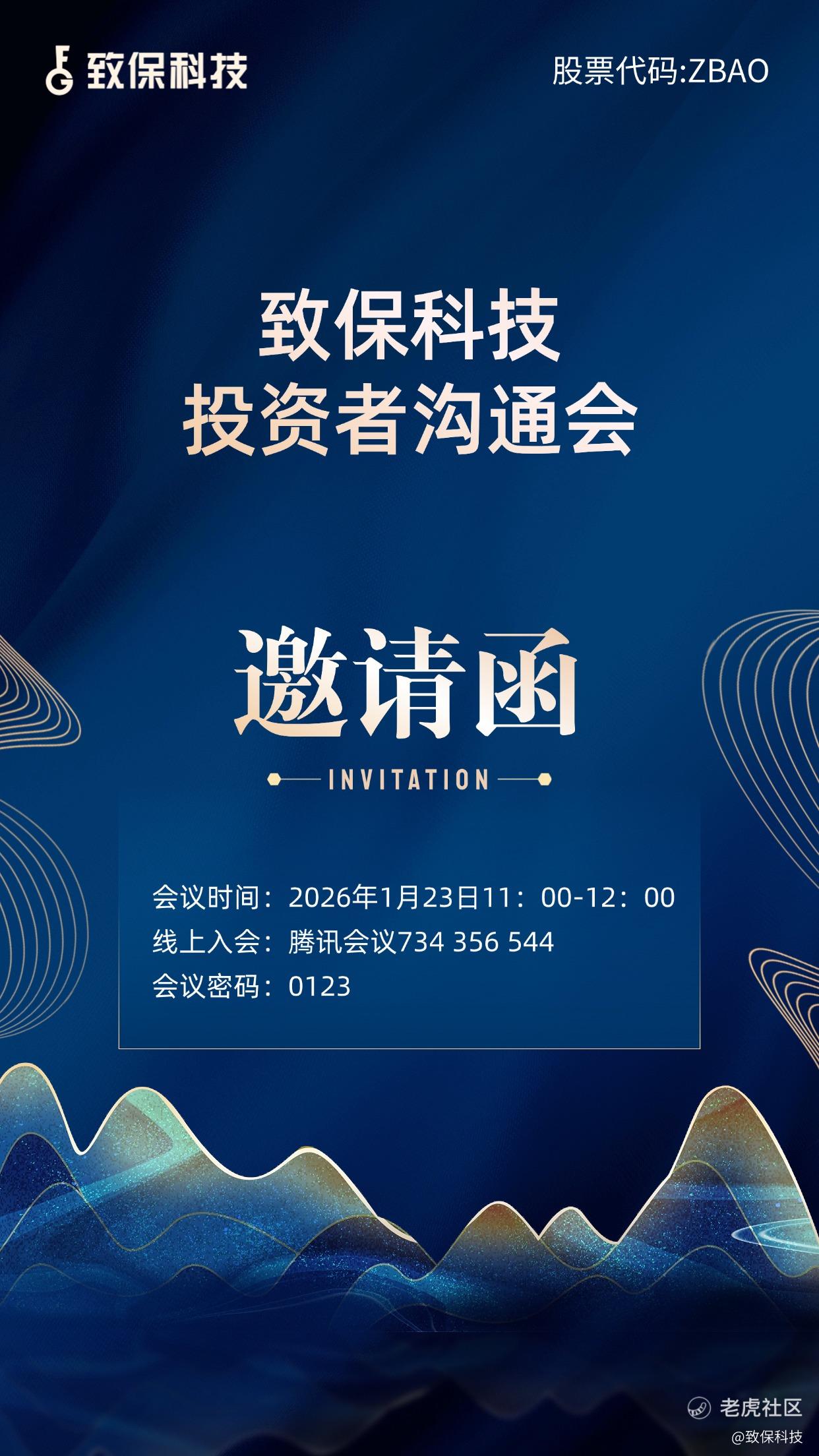 致保科技(股票代码:ZBAO)将于2026年1月23日(周五)上午11:00-12:00举行线上投资者沟通会。欢迎关注我们的投资者与合作伙伴参与交流!