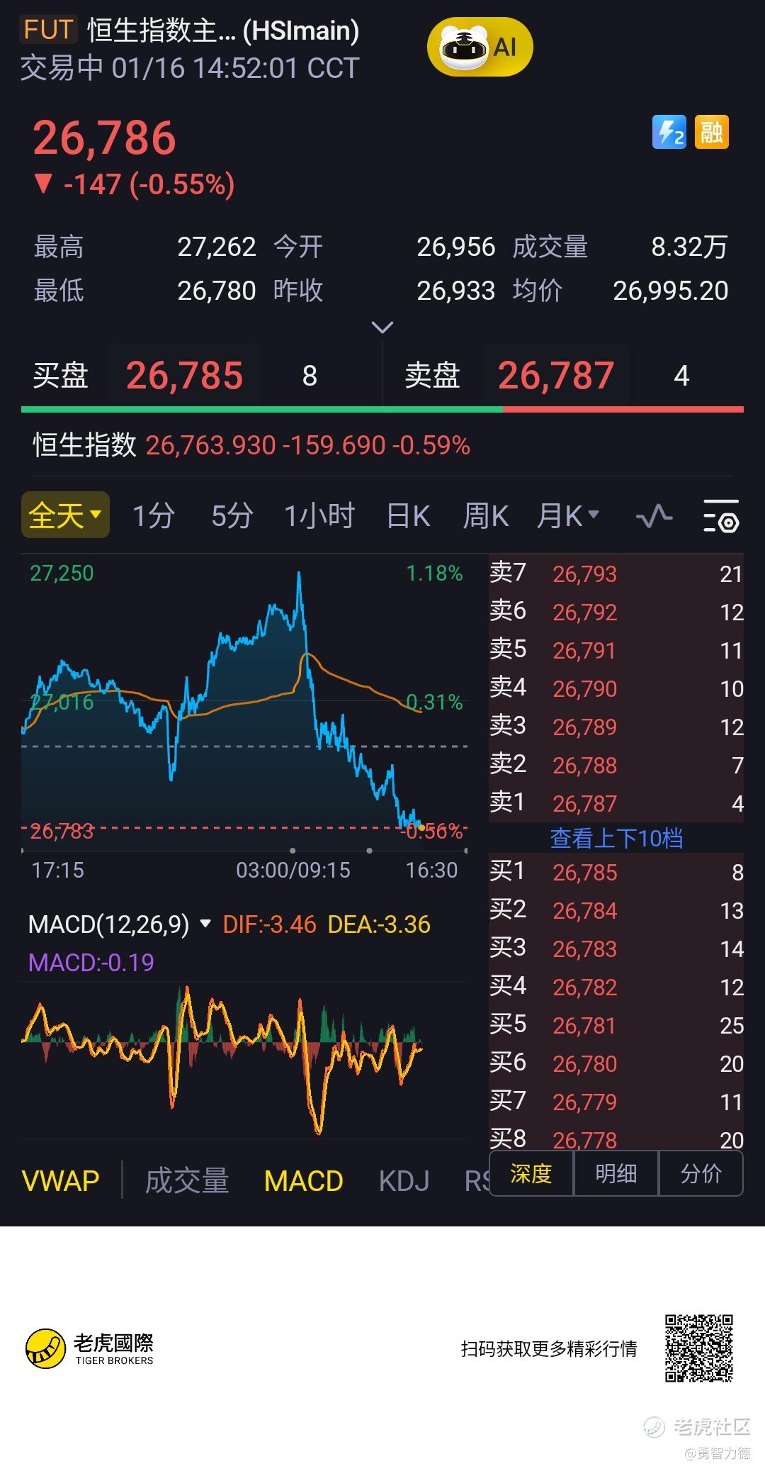 $恒生指数主连 2601(HSImain)$ 斜劈叉,但丝毫不影响 $NQ100指数主连 2603(NQmain)$