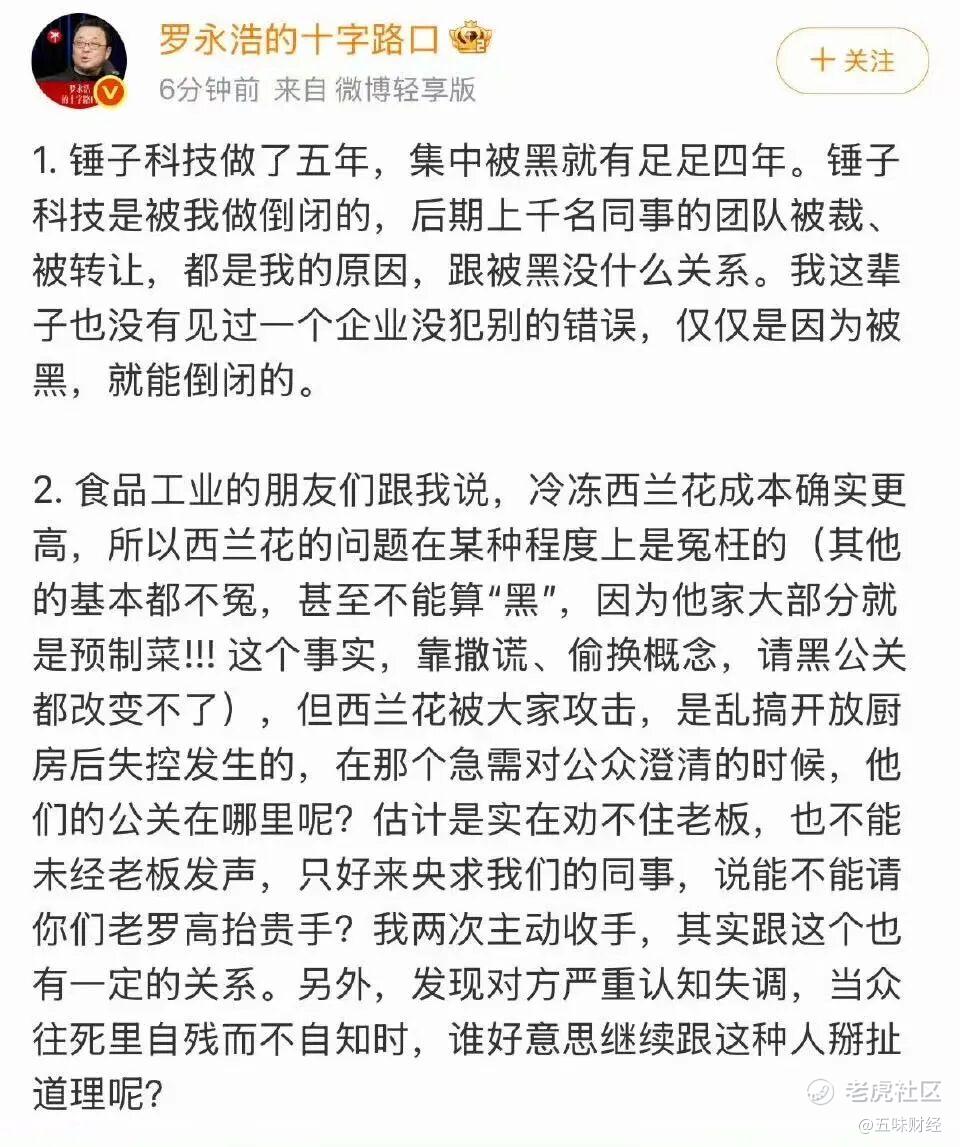这不,罗永浩又出来了,说西贝大部分就是预制菜。你说你惹他干嘛!惹他后又为什么反复蹦跶?!