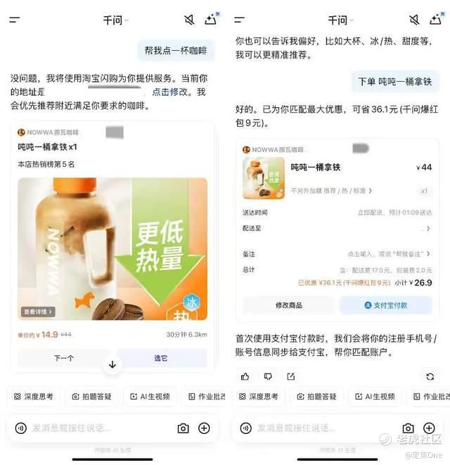 比如,不再反复输入密码,只需抬头看一眼手机就能解锁;点开购物软件时,“猜你喜欢”的商品,正好踩中你的需求。这些变化看似不大,却在不知不觉中,替代了原本繁琐的操作路径。而如今,点一杯咖啡从“翻遍榜单、计算满减”变成“一句话就能下单”,在千问接入淘宝闪购后,也成为现实。