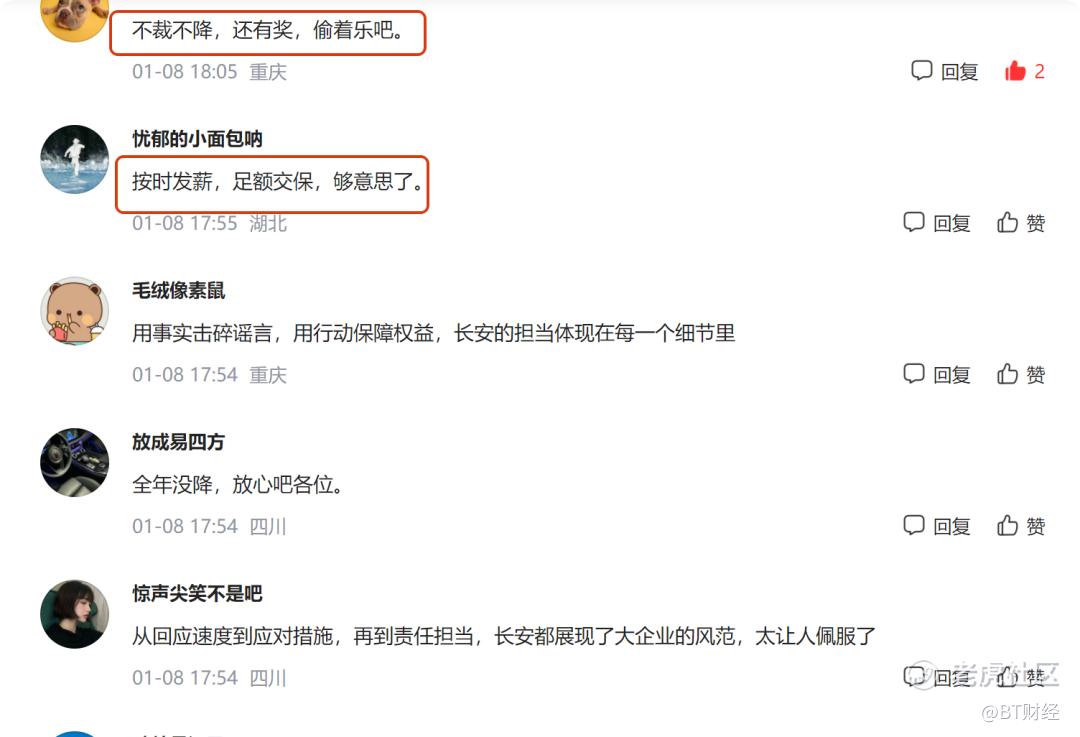 2024年长安汽车净利润不过73.21亿元,2025年前三季度来看,净利润大概率会低于2024年,即便如此,长安汽车也保障员工权益,支撑企业可持续发展。在网上引来一片赞誉。随着长安汽车官方辟谣,网络上的争议也随之反转,有来自其他车企的员工在社交平台上表示,“两天前还在嘲笑长安,现在嘲笑我自己了”。还有网友表示:“小丑竟是我自己”、“长安汽车,对不起,我承认我之前笑的太大声了”。