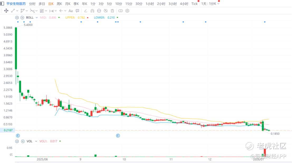 直到今年 1 月 9 日,平安生物医药才发布一则公告,宣布了一项 3000 万美元的非约束性现金投资计划,并计划以 6000 万美元收购未来生物科技公司。这一消息,直接推动了公司股价在 1 月 12 日大幅收涨 41.85%,但该消息炒作仅持续了一个交易日。1 月 13 日和 1 日,平安生物医药股价分别收跌 16.88% 和 7.25%,再次将公司股价拉低至 0.2 美元附近,较当初的发行价跌去 96.67%,也进一步拉开了公司与上市合规目标的距离。