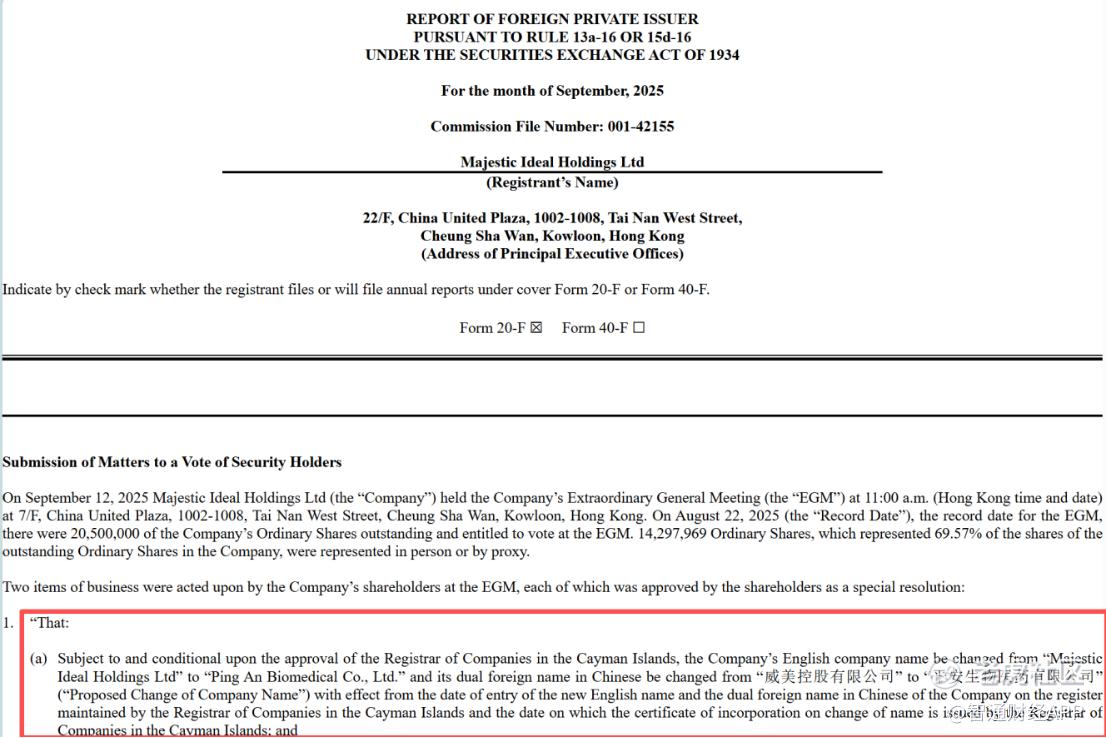 11 月 24 日,改名后的 “平安生物医药” 收到来自纳斯达克上市资格部门的信函,通知公司在 2025 年 10 月 10 日至 2025 年 11 月 20 日期间,基于公司收盘出价,不再符合纳斯达克上市规则 5550 (a)(2) 中规定的每股 1 美元最低出价的持续上市要求,面临退市风险。