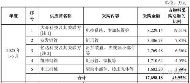 此后,双方合作不断扩大。《招股书》显示,信胜科技2022年—2024年及2025年上半年分别向申工机械采购驱动小部件、梭床壳体、针杆架等576.34万元、780.04万元、1602.56万元和1682.2万元,申工机械由此在2025年上半年新进成为信胜科技的第五大供应商,采购占比为3.99%。