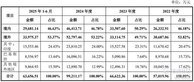 在近年来业绩稳定增长背后,信胜科技超过一半的收入来源于境外,2022年—2024年及2025年上半年,公司境外销售收入分别占主营业务收入的53.82%、49.71%、53.22%和53.37%。