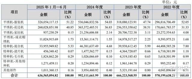 目前,信胜科技的收入主要来自平绣机中的服装机和花边机这两大产品,二者合计贡献的收入约占公司主营业务收入的90%左右。