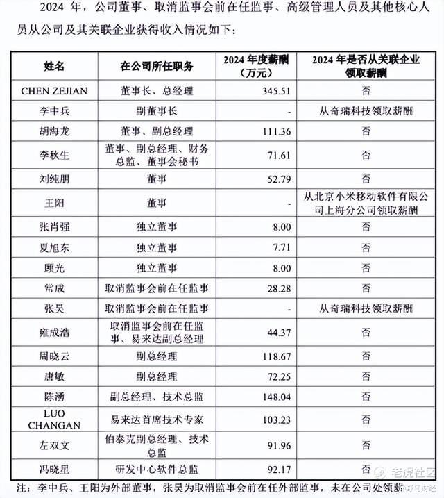 其中,实控人陈泽坚作为澳籍华人,2024年薪酬达345.51万元,位居高管薪酬首位;副总经理、技术总监薪酬148.04万元,副总经理周晓云薪酬118.67万元,董事、副总经理胡海龙薪酬111.36万元,易来达首席技术专家薪酬103.23万元,仅这五位高管的薪酬合计就达826.8万元,占2024年高管薪酬总额的63.4%。