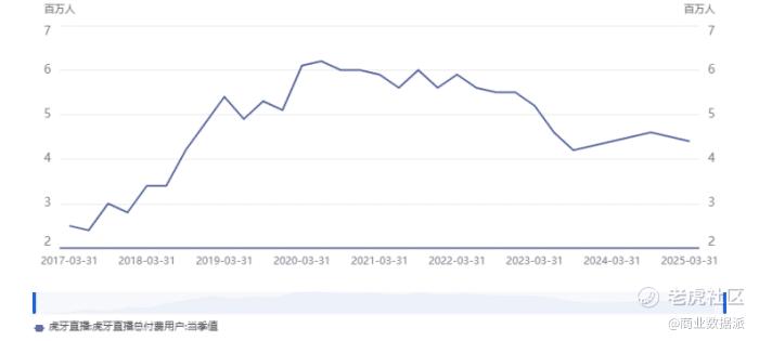 自2023年以来,直播行业整体红利消退,虎牙的核心指标持续承压。2022年至2024年,虎牙付费用户数分别为563万、458万和450万。相比之下,B站2025三季度月付费用户超过3500万。
