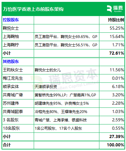 根据招股书披露,万怡医学在香港上市前的股权架构中,