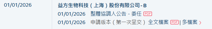 2026年1月1日,来自上海自贸区的A股上市公司益方生物科技(上海)股份有限公司InventisBio Co., Limited-B(688382.SH)(以下简称益方生物)在港交所递交招股书,拟香港主板IPO上市。