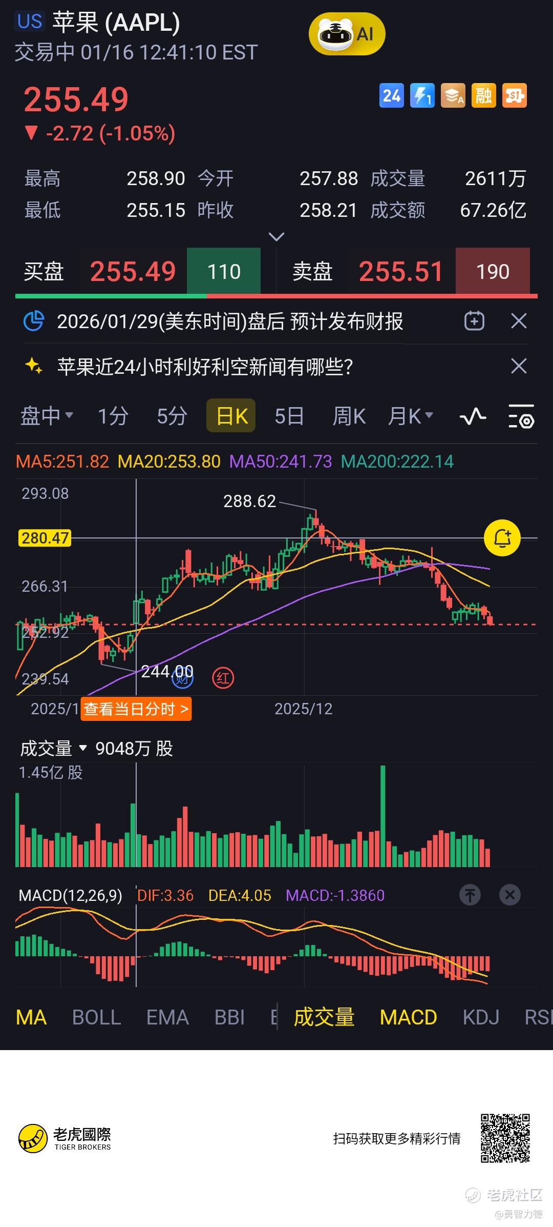 $苹果(AAPL)$ 创10月20以来的新低