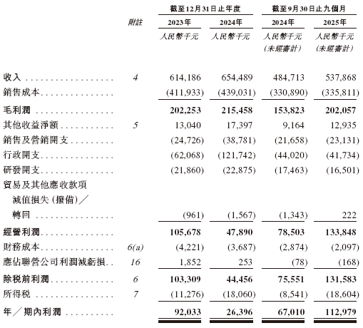招股书显示,在过去的2023年、2024年和2025年前九个月,上海生生的营业收入分别为人民币6.14亿、6.54亿和5.38亿元,相应的净利润分别为0.92亿、0.26亿和1.13亿元。