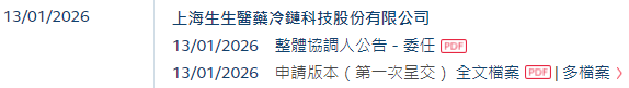 2026年1月13日,来自上海闵行区的上海生生医药冷链科技股份有限公司 Shanghai Shengsheng Pharmaceutical Cold Chain Technology Co., Ltd.*(以下简称“上海生生”)在港交所递交招股书,拟香港主板IPO上市。