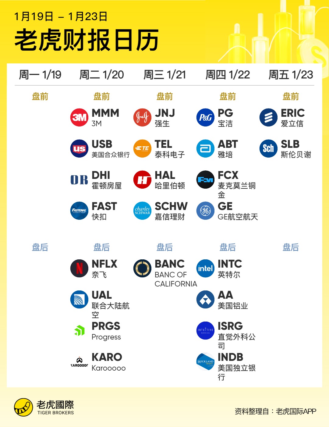 此外还有 $强生(JNJ)$ , $宝洁(PG)$ , $联合大陆航空(UAL)$ 等多家老牌股将公布财报![666]