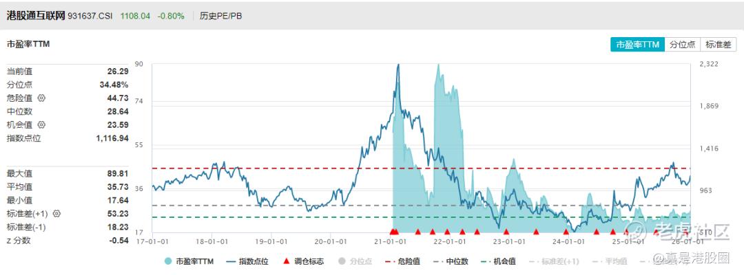 - 港股通互联网指数: PE约为26倍(历史分位数 34%)