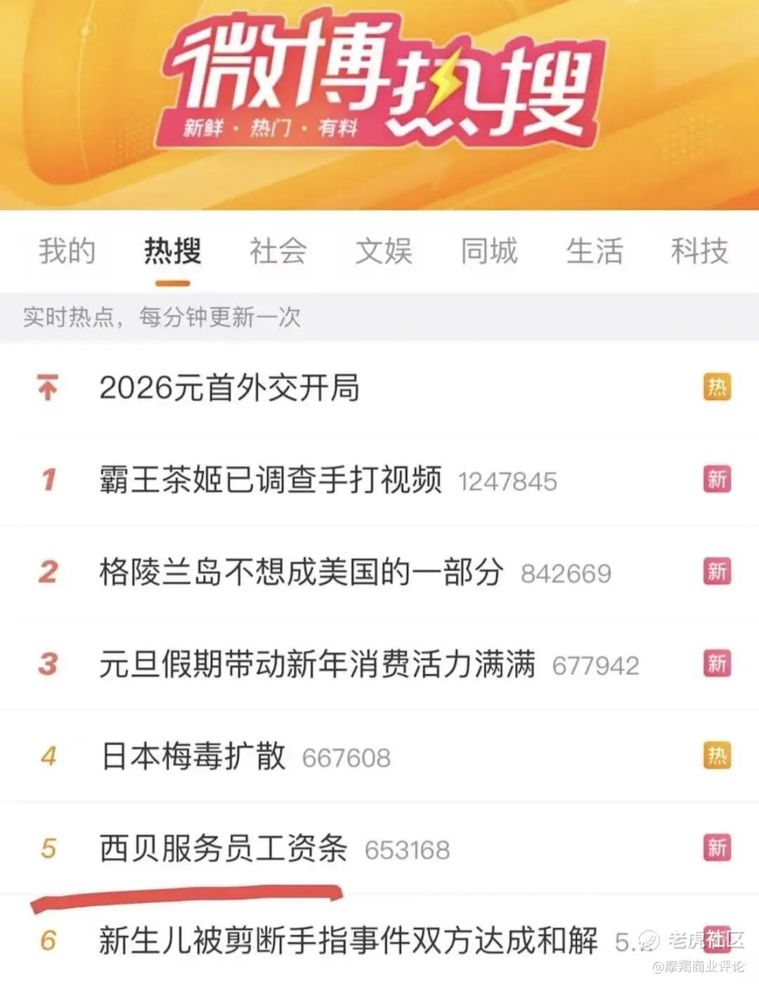 本来,在2025年年底,风波都过去,西贝的公关团队也按部就班做起了正面传播,围绕经营面主题的“西贝门口又排气了长队”,围绕管理层面主题的“西贝员工工资条”,后者甚至还被西贝的公关团队花钱操作上了微博热搜。