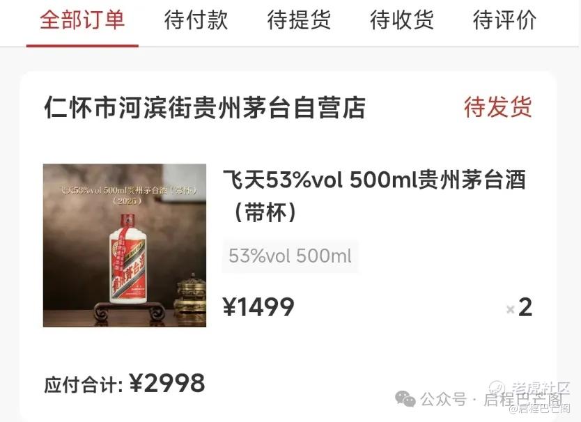 飞天 53%vol 1L 贵州茅台酒,2989 元/瓶;