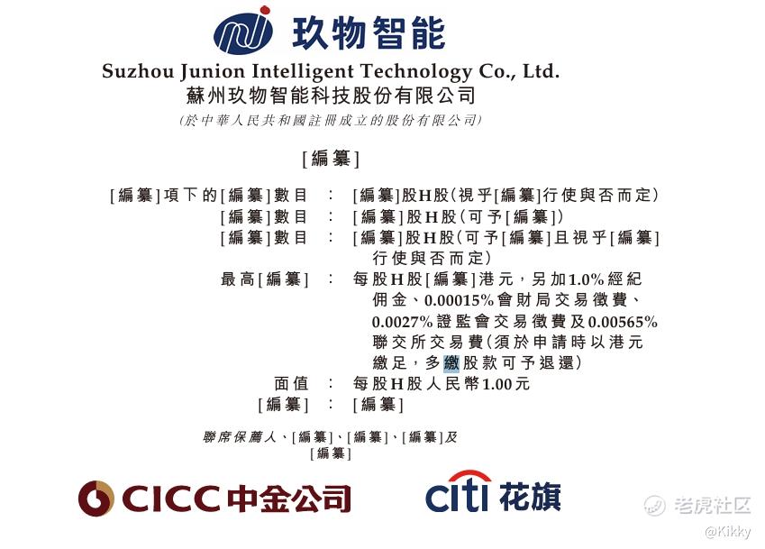 苏州玖物智能科技股份有限公司(“玖物智能”)于2026年1月19日正式向港交所递交上市申请,由中金、花旗保荐。