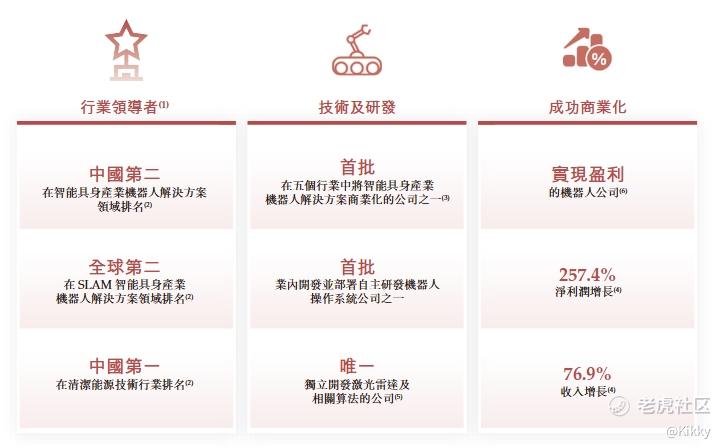 根据弗若斯特沙利文报告,在中国智能具身产业机器人解决方案市场,按2024年收入计,公司排名第二,市场份额为5.9%。在全球SLAM导航的智能具身机器人赛道,同样位列第二。在中国清洁能源技术领域(光伏、锂电池制造),排名第一。在中国电子与半导体领域,排名第四。公司是中国少数实现盈利的机器人公司之一。