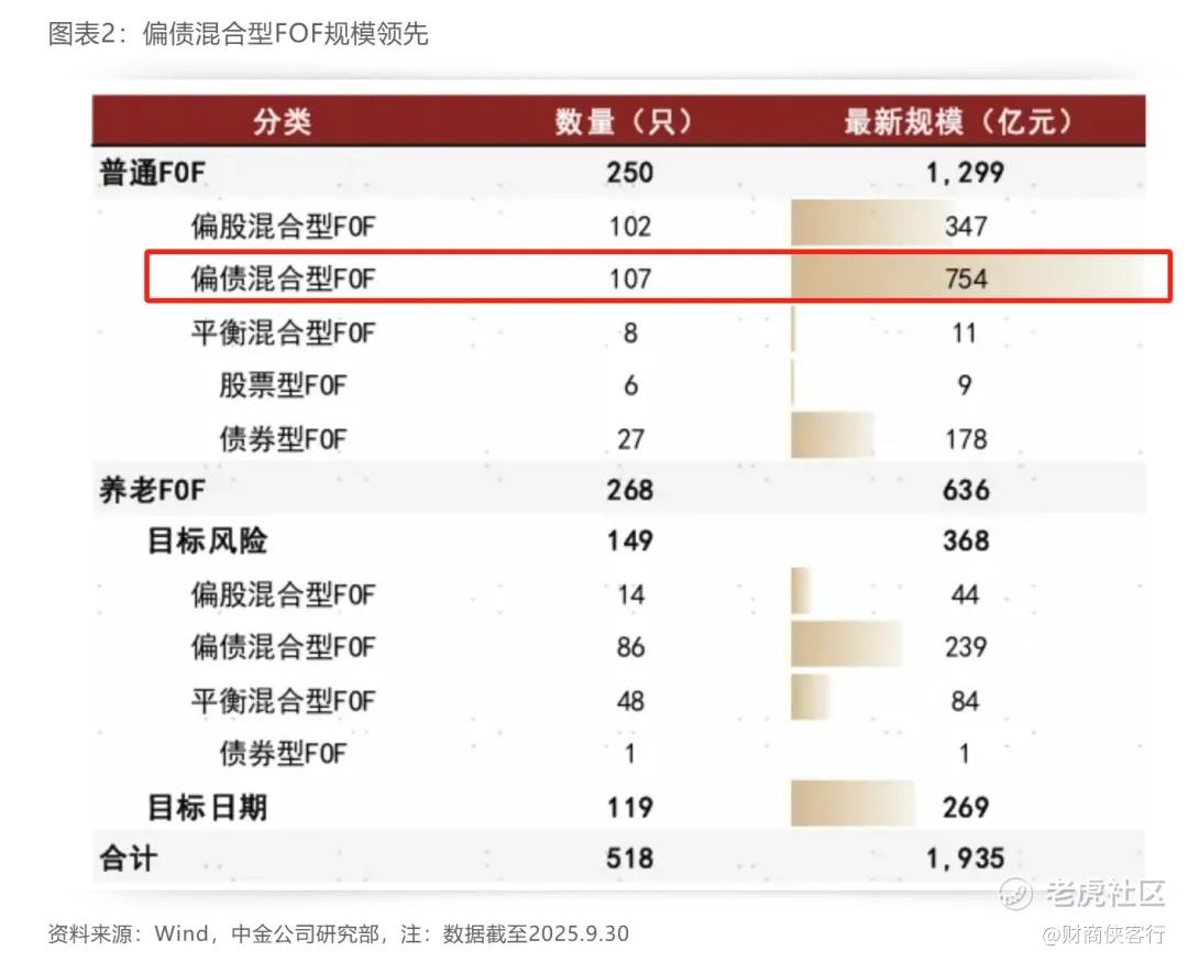 中金公司的数据显示,截至2025年三季度末,全市场共有518只公募FOF基金,存量规模合计1934.9亿元,其中,偏债混合型FOF在公募FOF中的占比约为51.3%。