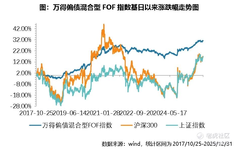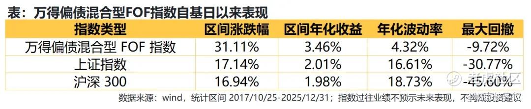 Wind数据显示,截至2025年底,偏债混合型FOF指数自基日以来累计上涨了31.11%,8年下来,年化回报3.46%。