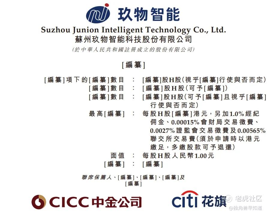 据港交所1月19日披露,苏州玖物智能科技股份有限公司向港交所主板递交上市申请,中金公司、花旗为联席保荐人。 $苏州玖物智能科技股份有限公司(临时代码)(91060)$
