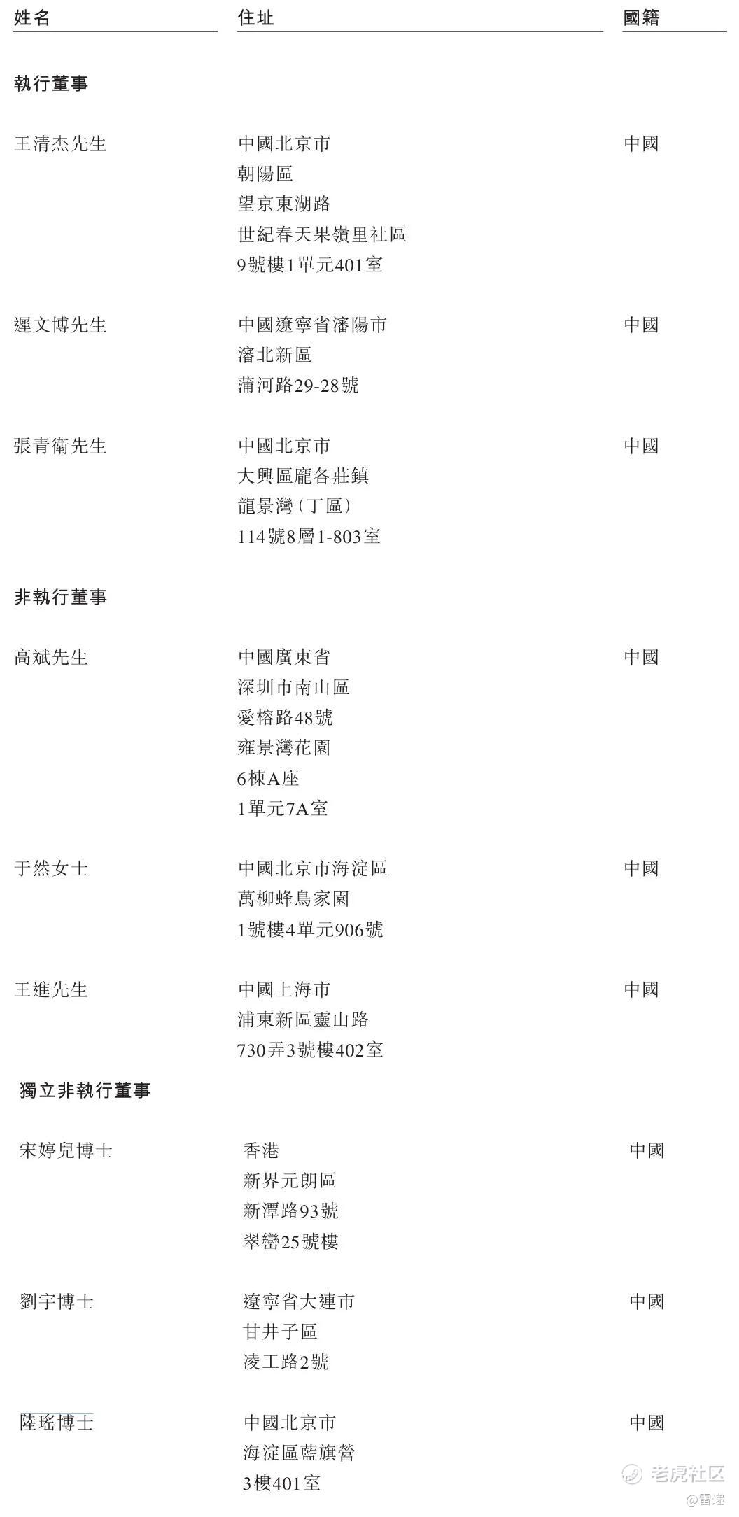 德风新征程执行董事分别为王清杰、迟文博、张青卫;非执行董事分别为高斌、于然女士、王进;独立非执行董事分别为宋婷儿博士、刘宇博士、陆瑶博士。